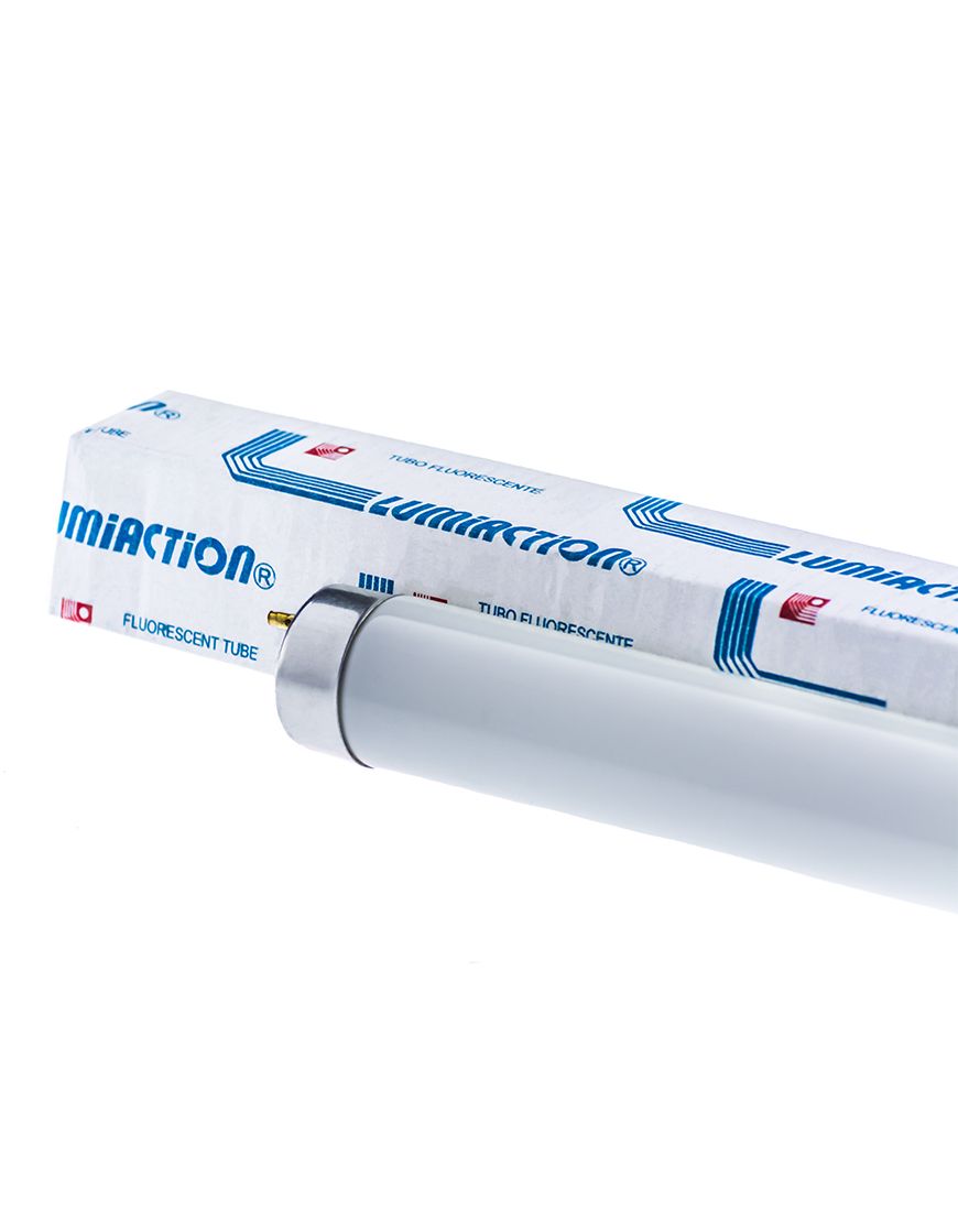 La pared interior del tubo se encuentra recubierta con una sustancia fluorescente, que se encarga de convertir los rayos de luz ultravioleta en radiaciones de luz visible. El tubo está relleno de un gas inerte, normalmente argón y un poco de mercurio líquido. El gas facilita el surgimiento del arco eléctrico que enciende la lámpara, y también controla el flujo de electrones que atraviesan el tubo. Los casquillos, por otra parte, calientan el argón que contienen en su interior para que se puedan encender.
