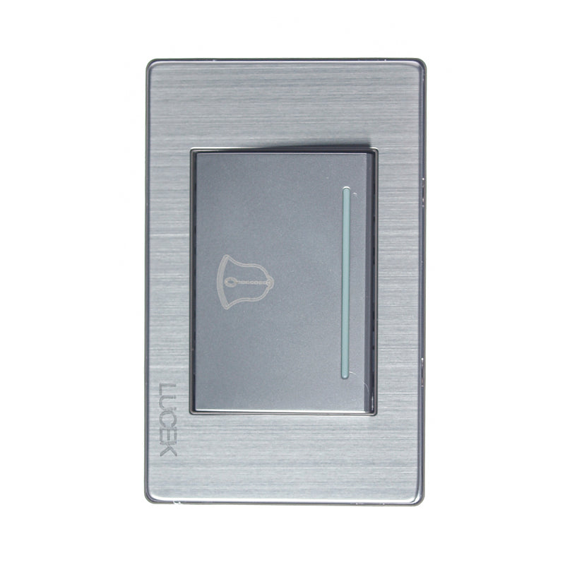 Placa metálica plateada con botón timbre de 3 módulos plateado. 127-250 v 16 a Acero inoxidable. Fácil de instalar. Terminales en punta de plata. Excelente calidad. La tecla es más ancha lo cual nos proporciona una vista más estética.