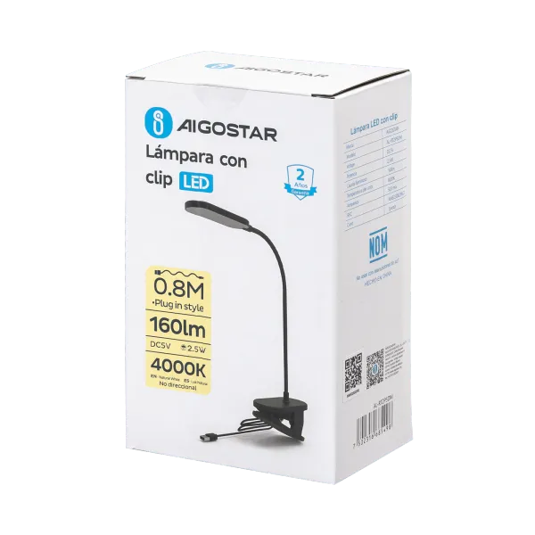 LÁMPARA DE LECTURA CLIP 2.5W 40K LUZ NEUTRA ATENUABLE AIGOSTAR 685498