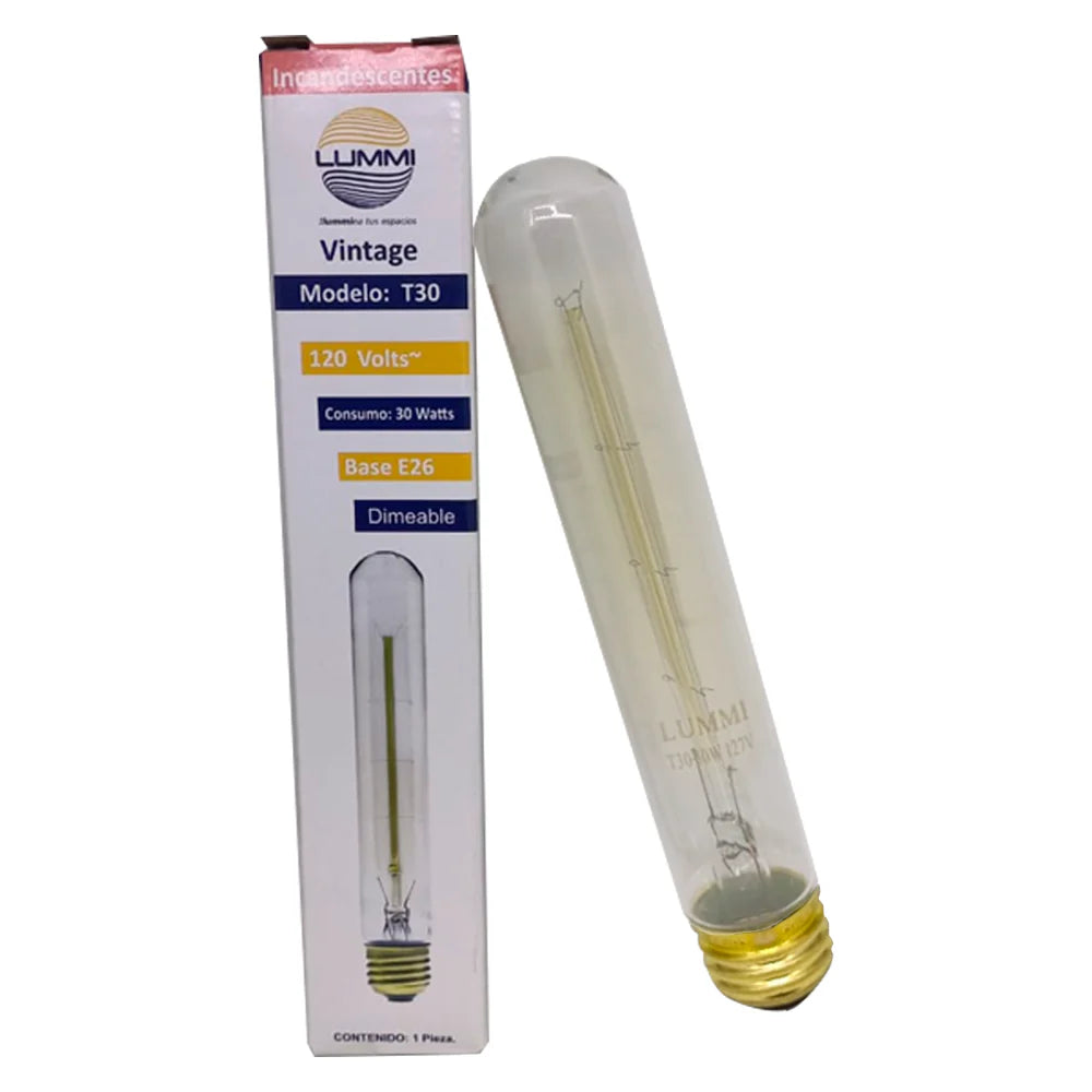 - Lámpara incandescente tipo tubular 30 vintage E26 de 30W