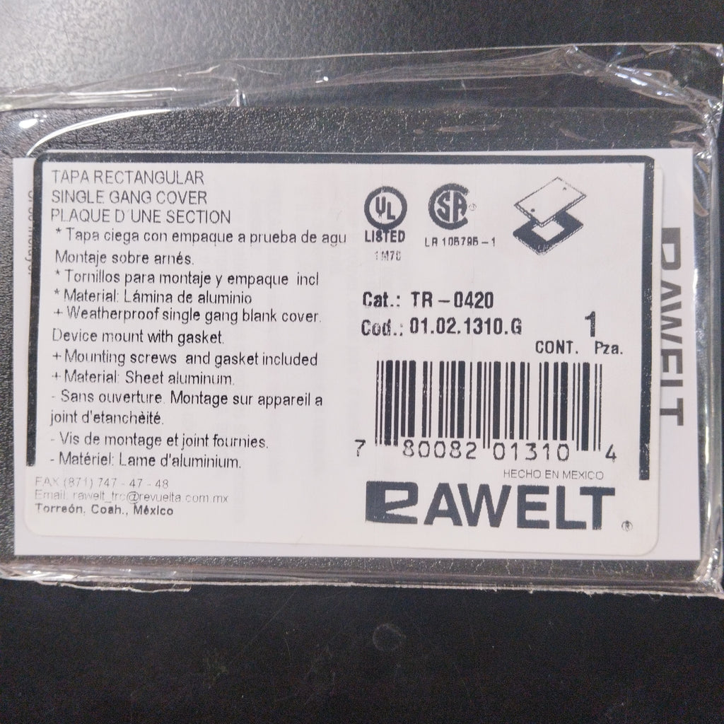 Tapa rectangular ciega con empaque. RAWELT TR-0420